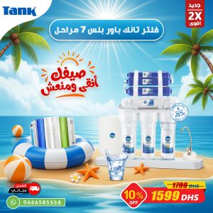فلتر تانك باور 7 مراحل R.O Plus بتقنية التناضح العكسي مع كل الشمعات