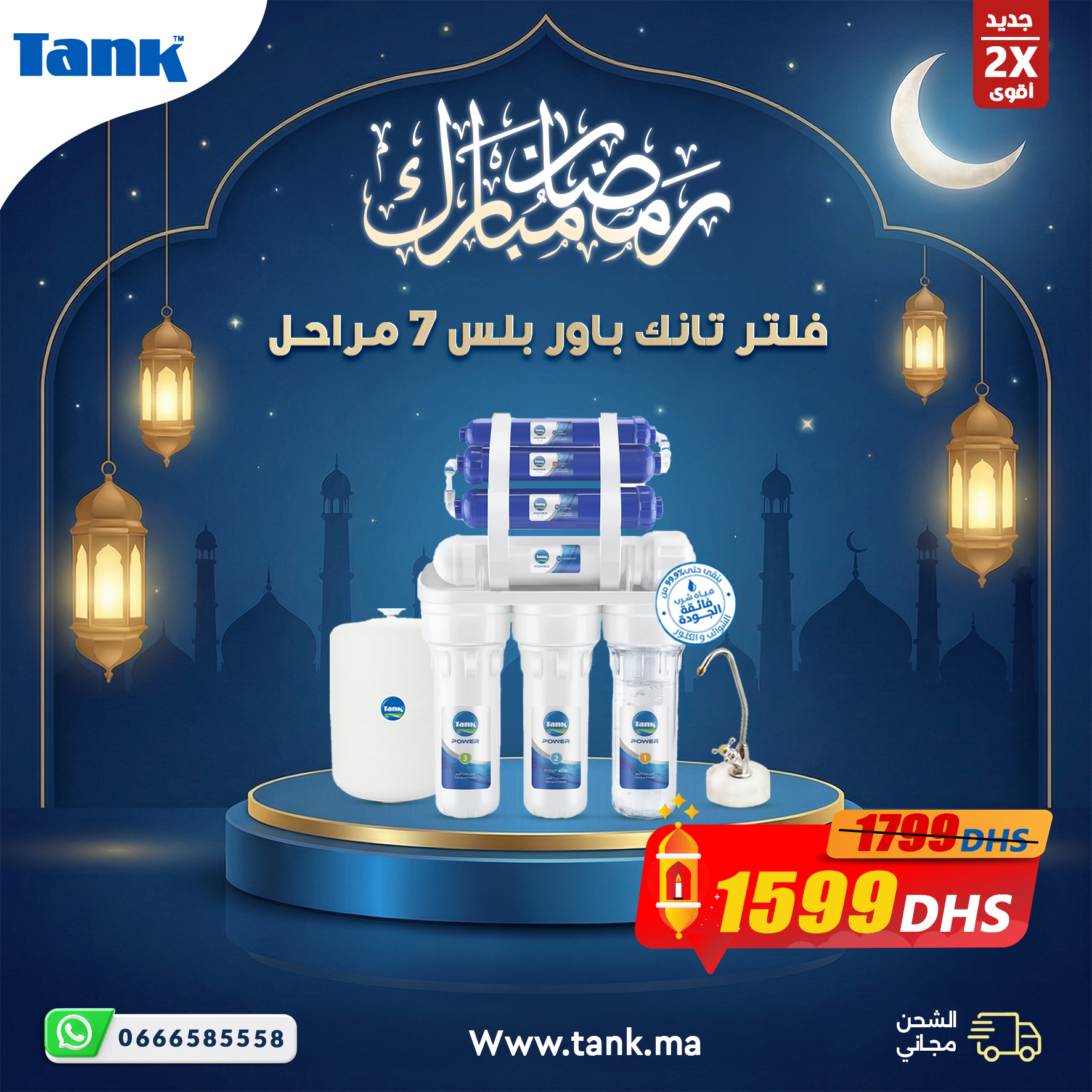فلتر تانك باور بلس ال7 مراحل بتكنولوجيا الميكروشيلد® يقدم مياه شرب صحية و نقيه بجوده عاليه حيث ينقي المياه من 99.9٪ من الشوائب، الطين، الحشرات، الصدأ، الكلور، الغازات، المواد العضوية، الطعم ، الرائحة ، الأملاح الذائبة الضاره ، الفيروسات ، البكتيريا ، ويعادل نسبة الحمضية في المياه بالاضافه إلي المرحلة الأخيرة والتي تزيد تعمل على تحسين طعم المياه وأزاله المراره بفضل استخدام شمعات تانك باور الجديدة.